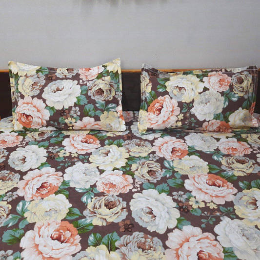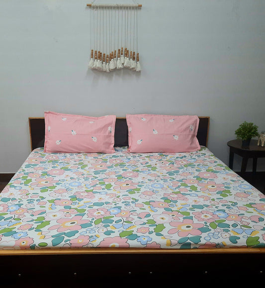 Avioni Home's Creta premium glaze cotton Elastic Fitted King Size Bedsheet with 2 Pillow Covers | Floral Design