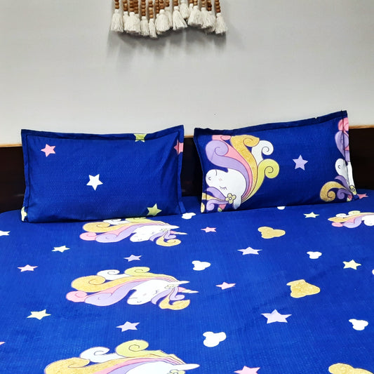 Avioni Home's Creta premium glaze cotton Elastic Fitted King Size Bedsheet with 2 Pillow Covers