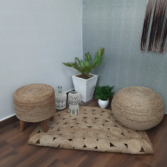 Avioni Natural Jute With Small Circles Braided Carpet Eco Friendly- Boho Collection-Multiple Sizes