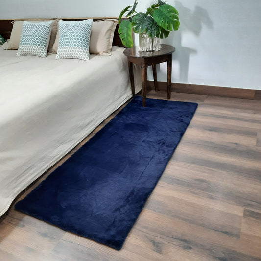 Avioni Ultra Soft Cozy Fluffy And Soft Rabbit Fur Rug –Navy Color- Easily Hand Washable – Bedside/Hallway/Pooja Room- 60X150cm