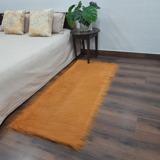 Avioni Ultra Soft Cozy Fluffy Faux Fur Rug - Brown Color - Easily Hand Washable - Bedside/Hallway/Pooja Room- 60X150cm