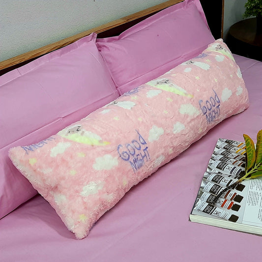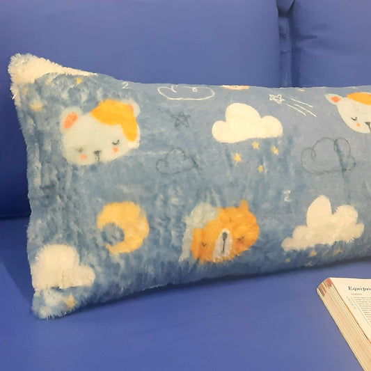 Avioni Soft Fluffy Plush Faux Fur CozyChic Cuddle Pillow | Cute Sleepy Design | 40 x 13 inches (100 x 33 cms)