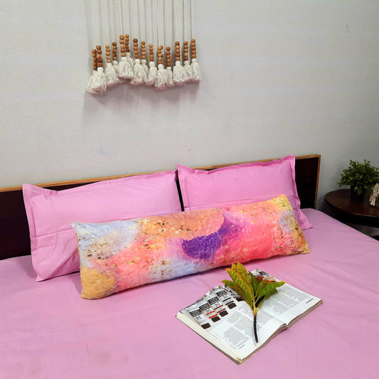 Avioni Soft Fluffy Plush Faux Fur CozyChic Cuddle Pillow| Beautiful Pink Design | 40 x 13 inches (100 x 33 cms)
