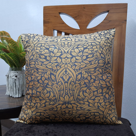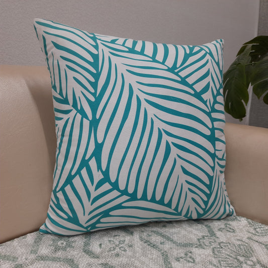 Riviera Collection-Cushion Covers In Glace Cotton For Regular Use –Blue-White Leaves– Best Price 40cm x 40cm (~16″ x 16″) – Set of 5
