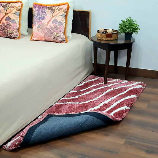 Plush Soft Washable Shaggy Carpet in Wine Color With White Wave Design /Bedside Runners by Avioni Home