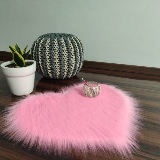 Shaggy Carpet – Heart Shaped Rug – Premium Long Faux Fur – 62 cm – Avioni Carpets- Pink Colour (1+1- set of 2 )