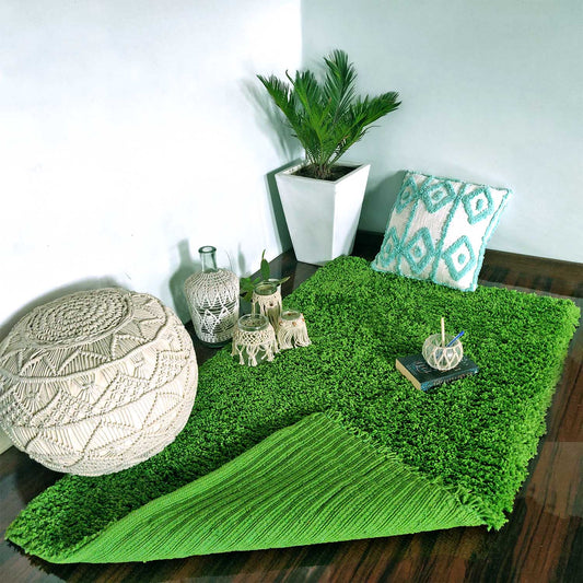 Shaggy Carpet | Washable | Hand Woven Super Luxurious Feel | Export Quality- Green Color