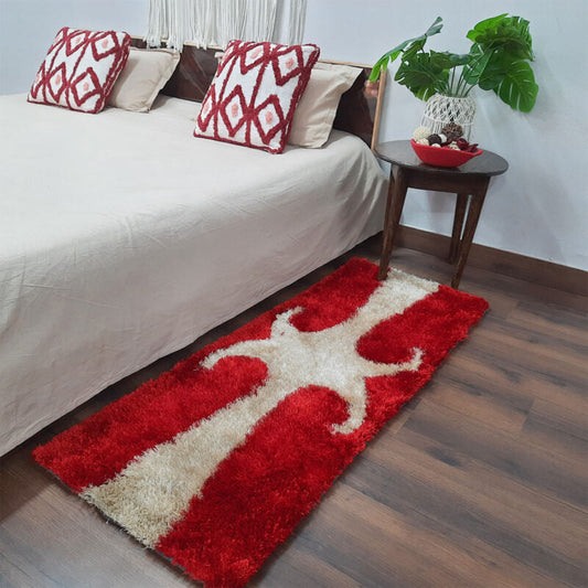 Shaggy Carpet / bedside runner in Red With Design (55cm x 137cm (~22″ x 55″)) by Avioni