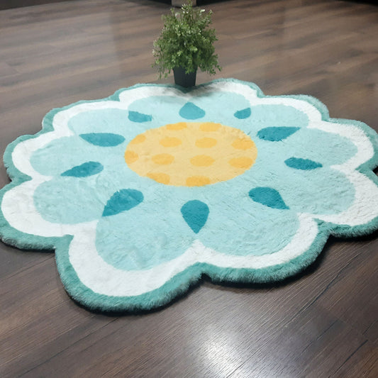 Avioni Flower Shaped Fluffy Shag Very Soft Faux Fur Rug for Kids Nursery Play Room