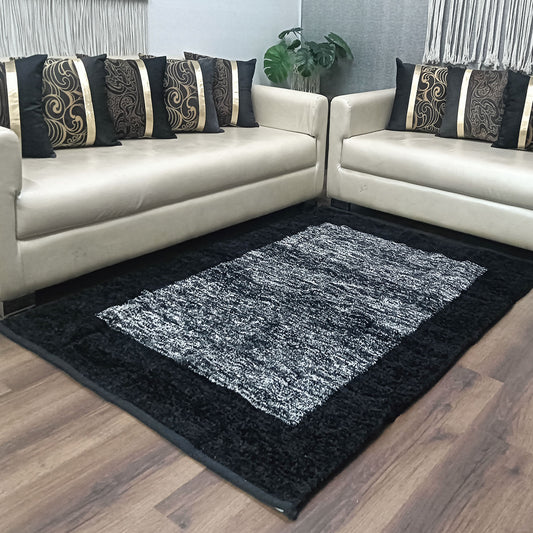 Avioni Handloom Cut Shuttle Rugs by Master Artisans | Feather like Luxurious Silk Soft Touch | Home Washable | Black and Beige border design | Reversible