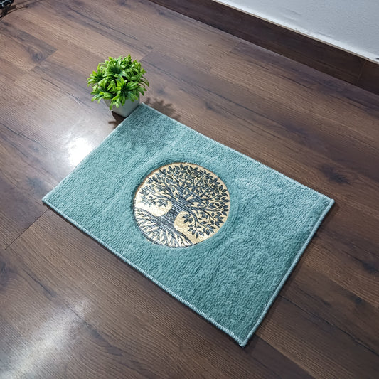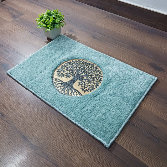 Avioni Desire Collection | Luxury Golden Touch Aqua Tree Floor Mat | Soft And Plush Handmade Door Mats / BathMats -40x60 cms