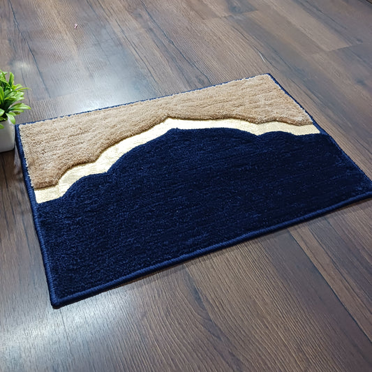 Avioni Desire Collection | Luxury Golden Touch Beige-Navy Blue Mahal Floor Mat | Soft And Plush Handmade Door Mats / BathMats -40x60 cms