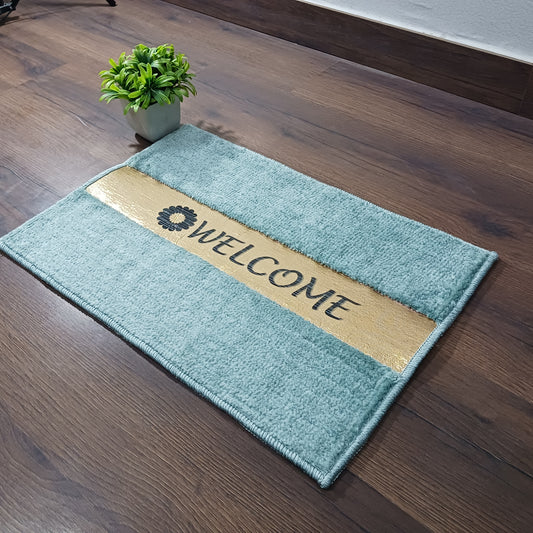 Avioni Desire Collection | Luxury Golden Touch Aqua Welcome Floor Mat | Soft And Plush Handmade Door Mats / BathMats -40x60 cms