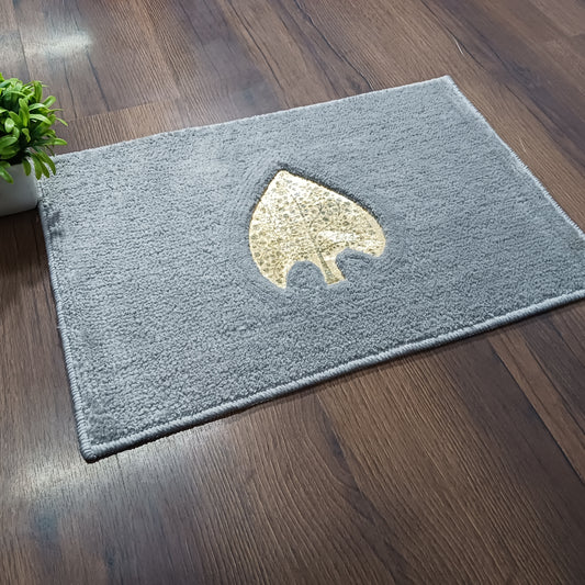 Avioni Divine Collection | Luxury Golden/Silver Touch Tufted Rug In Beautiful Leaf Shaped Soft And Plush Handmade Door Mats | 25mm thickness | BathMats -45x82 cms