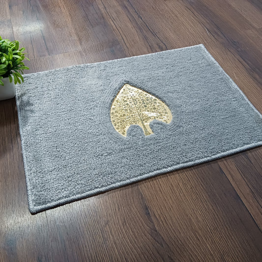Avioni Divine Collection | Luxury Golden/Silver Touch Tufted Rug In Beautiful Leaf Shaped Soft And Plush Handmade Door Mats | ~25mm thickness | BathMats -45x82 cms