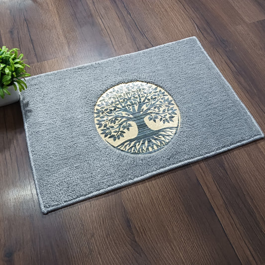 Avioni Desire Collection | Luxury Golden Touch Light Grey Tree Floor Mat | Soft And Plush Handmade Door Mats / BathMats -40x60 cms