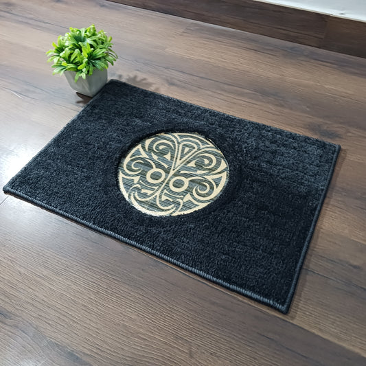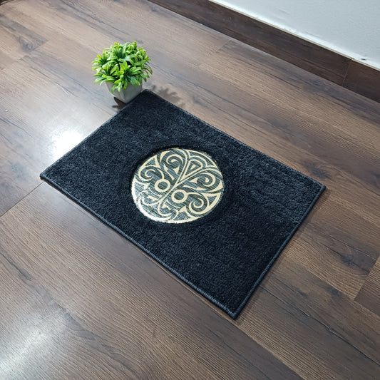 Avioni Desire Collection | Luxury Golden Touch Black Mandala Floor Mat | Soft And Plush Handmade Door Mats / BathMats -40x60 cms