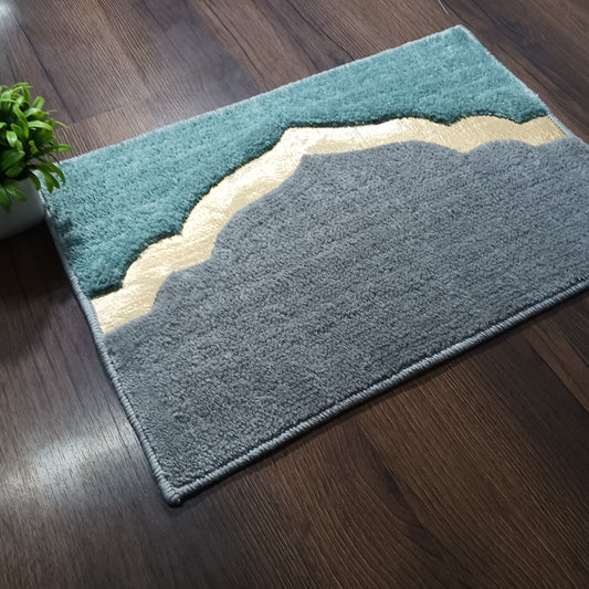 Avioni Desire Collection | Luxury Golden Touch Aqua Gold Line Floor Mat | Soft And Plush Handmade Door Mats / BathMats -40x60 cms