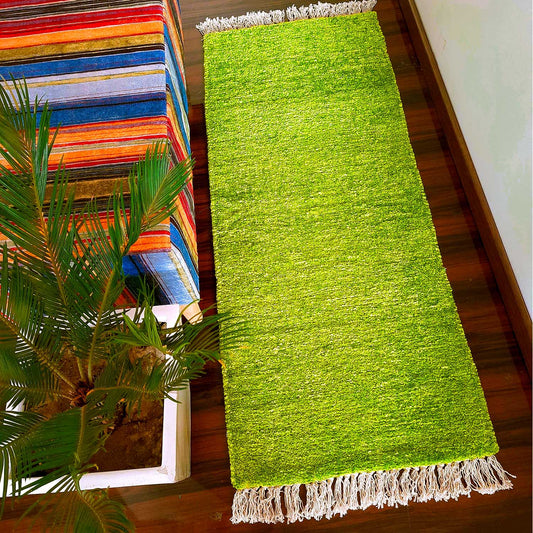 Avioni Bedside/Hallway/Pooja Carpets In Faux Silk Green-(22X55 Inch)-56X140 cms