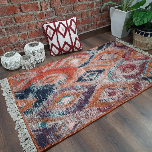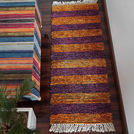 Avioni Bedside/Hallway/Pooja Carpets In Faux Silk Orange Multi-(22X55 Inch)-56X140 cms