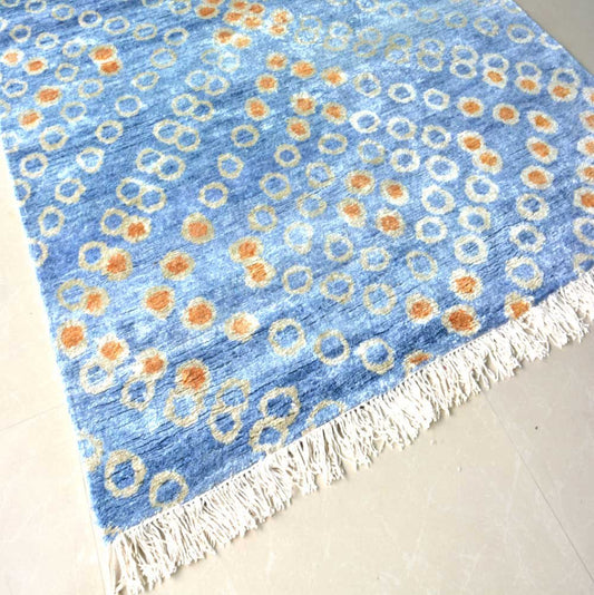 Hand Knotted Silk Carpet Blue Around 225 Knots Per Sq Inch – 120cm x 180cm (~4×6 Feet)- A Gift For Generations