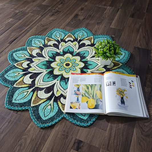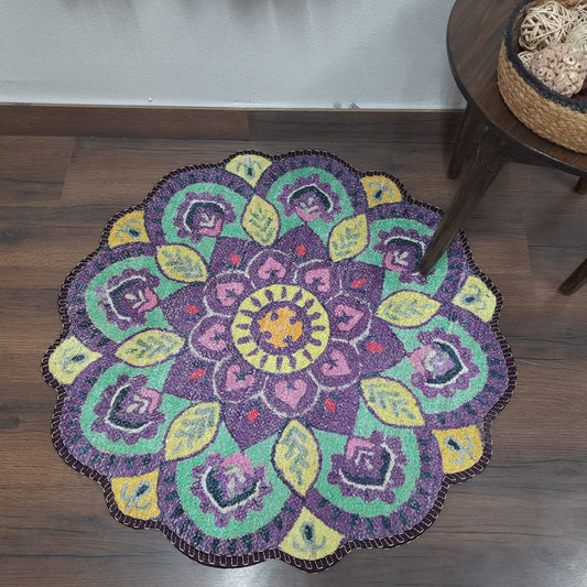 Avioni Home Floor Mats in Beautiful Traditional Cut loop Design Rangoli Colors | Anti Slip, Durable & Washable | Outdoor & Indoor