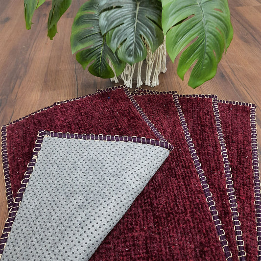 SET OF FOUR | Avioni SlipToGrip Universal Doormat | Maroon, Size 35cm x 55cm | Anti Slip, Durable & Washable | Outdoor & Indoor