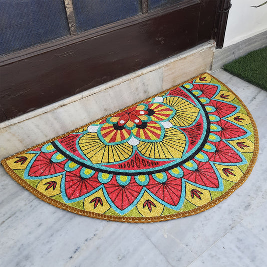Avioni Home Floor Mats in Beautiful Rangoli Design | Half Circle Rugs | Anti Slip, Durable & Washable | Outdoor & Indoor