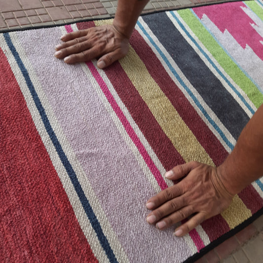 Avioni Handloom Ethnic Weave 100% Cotton Multi Color Yoga Mat 69cm x 212cm (~2.3×7Feet)