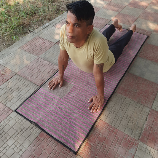 Meet your ultimate yoga companion - our premium cotton handloom Yoga Mat. Meticulously crafted with attention to detail, it elevates your practice to newfound levels of comfort and focus.