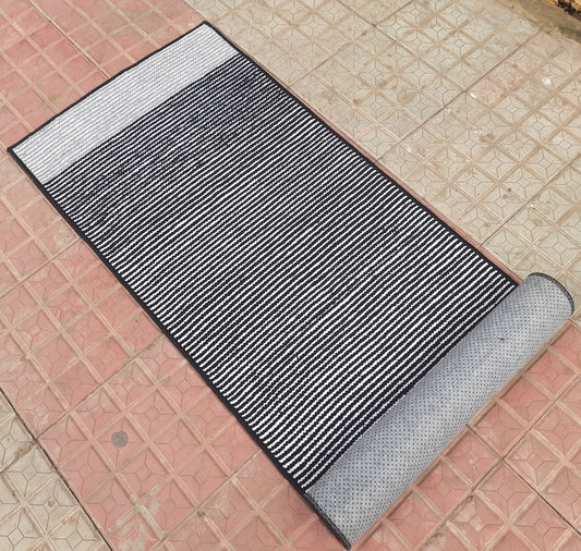 Avioni Luxury Soft Premium Chenille Stripe-Black& White-Yoga Mat 60cm x 180cm (~2×5.5 Feet)