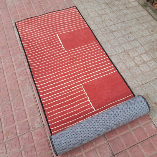 Avioni Luxury Soft Premium Chenille Stripe -Pastel Red- Yoga Mat 55cm x 175 cm(~2×5.7 Feet)