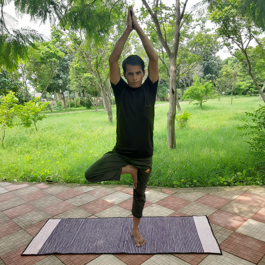 Meet your ultimate yoga companion - our premium cotton handloom Yoga Mat. Meticulously crafted with attention to detail, it elevates your practice to newfound levels of comfort and focus.