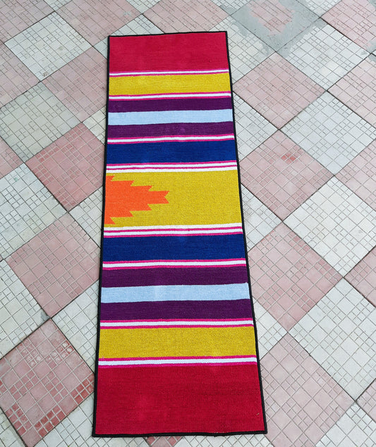 Avioni Luxury Ethnic Handloom 100% Cotton Anti Slip Multi Color Yoga Mat 70cm x 217cm (~2.5×7Feet)