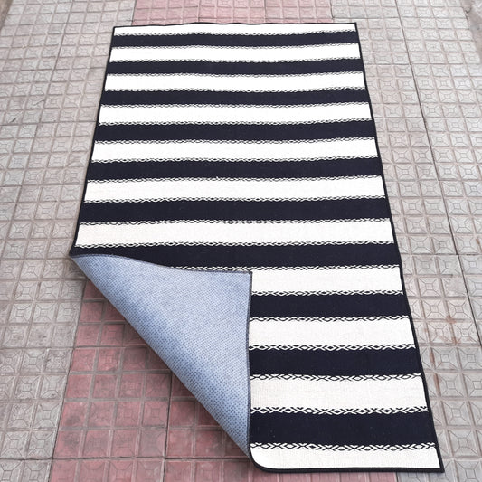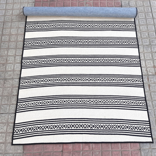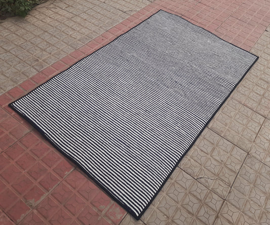 Avioni Luxury Soft Premium 100% Cotton Anti Slip Large Size Yoga Mat In Black & Ivory Color 110cm x 183cm (~4 feet x 6 feet)