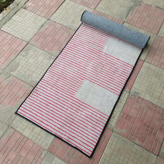 Avioni Luxury Soft Premium Chenille Stripe-Pink & White-Yoga Mat 60cm x 180cm (~2×5.5 Feet)