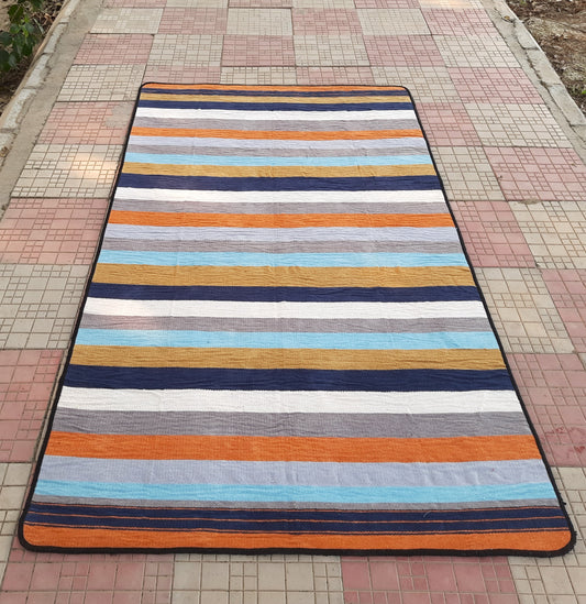 Avioni Luxury Soft Premium Blue Chenille Cotton Stripe Yoga Dhurry 87cm x 145cm (~3 feet x 5 feet)
