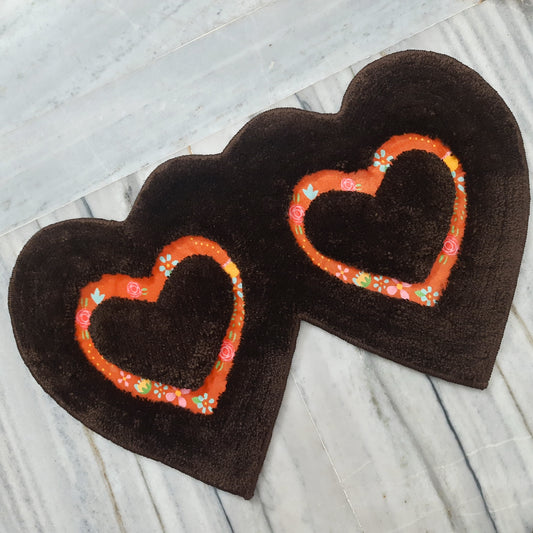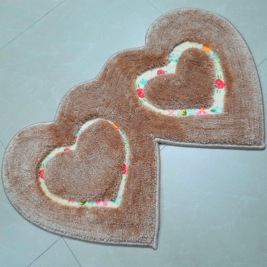 Avioni Home| Twinheart Floormat Collection | Soft Shaggy Dual Heart Shape Floor Mat /Door Mat | Dark Coffee | Fluffy & 10mm Thick Mat | 45 x 75 CM