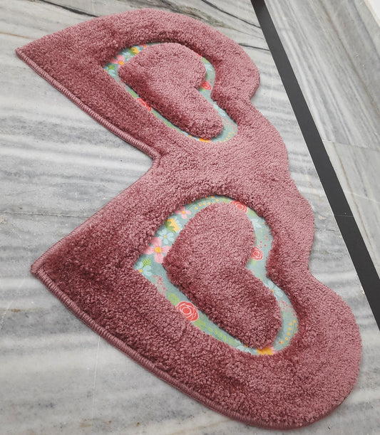 Avioni Home| Twinheart Floormat Collection | Soft Shaggy Dual Heart Shape Floor Mat /Door Mat | Wine Pink | Fluffy & 10mm Thick Mat | 45 x 75 CM