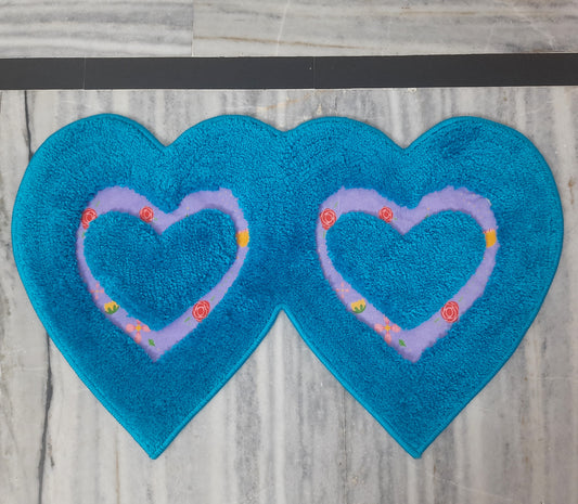 Avioni Home| Twinheart Floormat Collection | Soft Shaggy Dual Heart Shape Floor Mat /Door Mat | Turquoise | Fluffy & 10mm Thick Mat | 45 x 75 CM