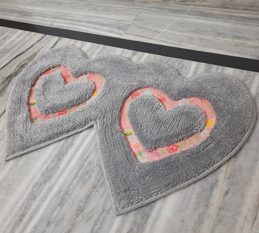 Avioni Home| Twinheart Floormat Collection | Soft Shaggy Dual Heart Shape Floor Mat /Door Mat | Silver Grey | Fluffy & 10mm Thick Mat | 45 x 75 CM