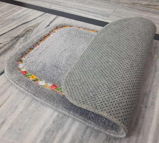 Avioni Divine Collection | Luxury Golden/Silver Touch Yellow Tufted Rug In Beautiful Flower Soft And Plush Handmade Door Mats | ~25mm thick | BathMats -45x75 cms