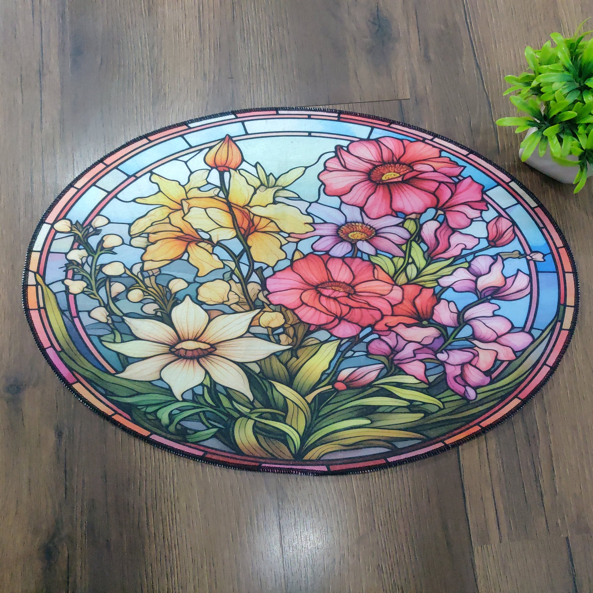 Add elegance to your home with OASIS designer mat featuring a vibrant floral print, anti-slip backing, and easy-wash durability
