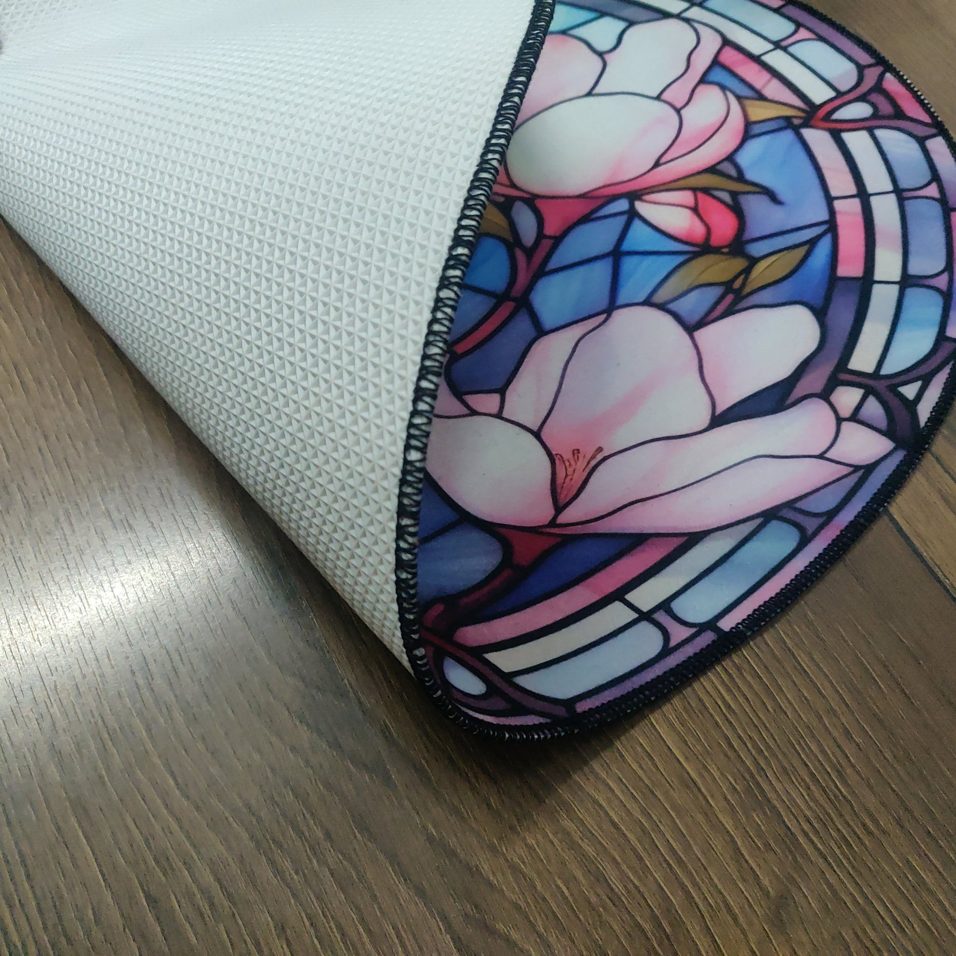 Add elegance to your home with OASIS designer mat featuring a vibrant floral print, anti-slip backing, and easy-wash durability